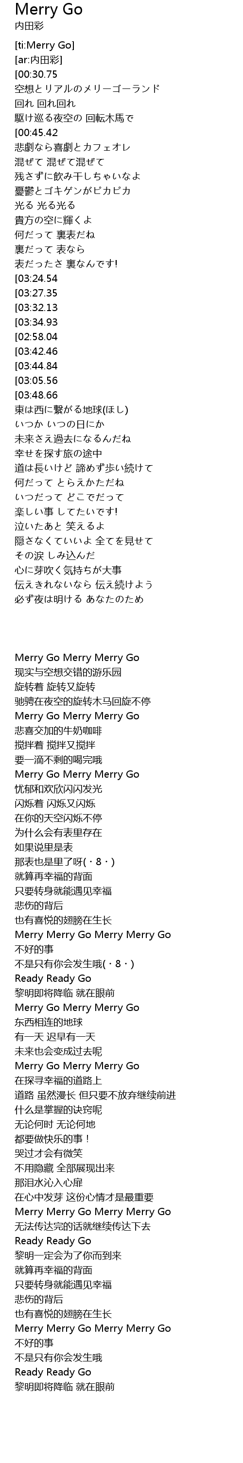 | [01:31.17][02:58.04][03:39.60] | Merry Merry Go Merry Merry Go |