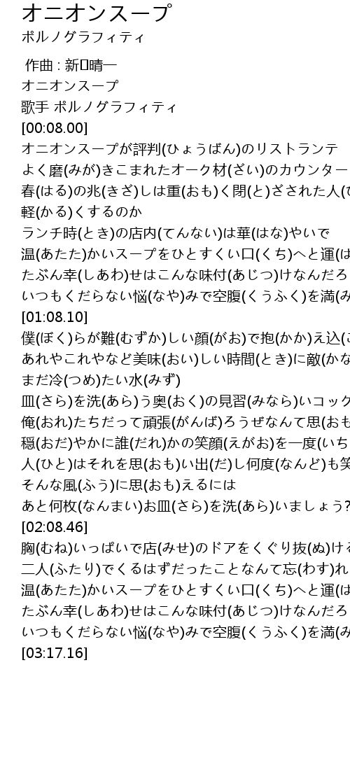 | [00:01.00] | オニオンスープ |