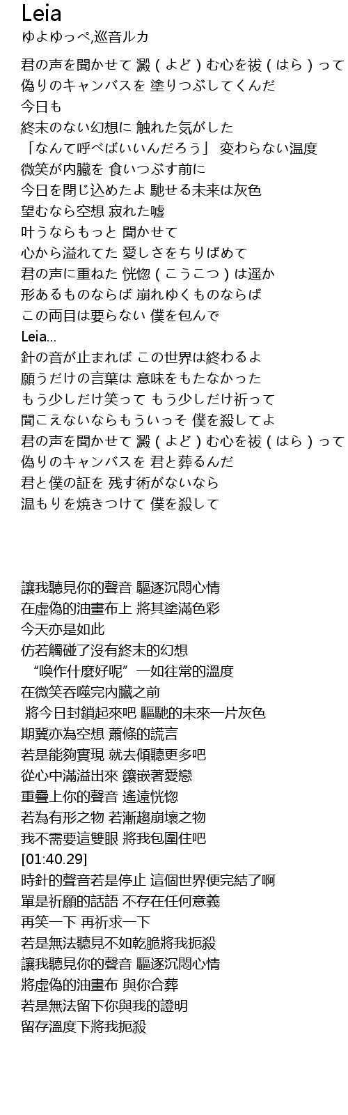 | [02:14.73] | 聞こえないならもういっそ 僕を殺してよ |