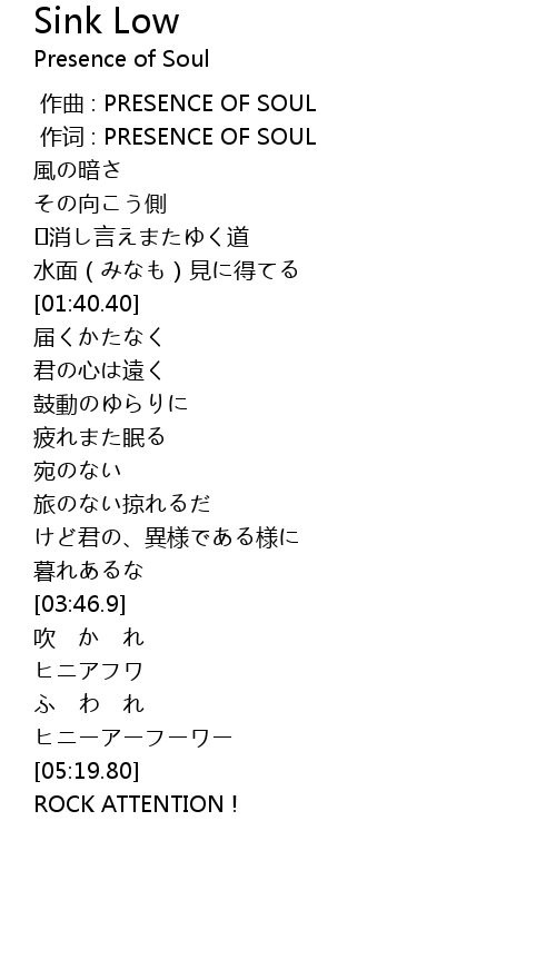 | [00:01.000] | 作词 : PRESENCE OF SOUL |