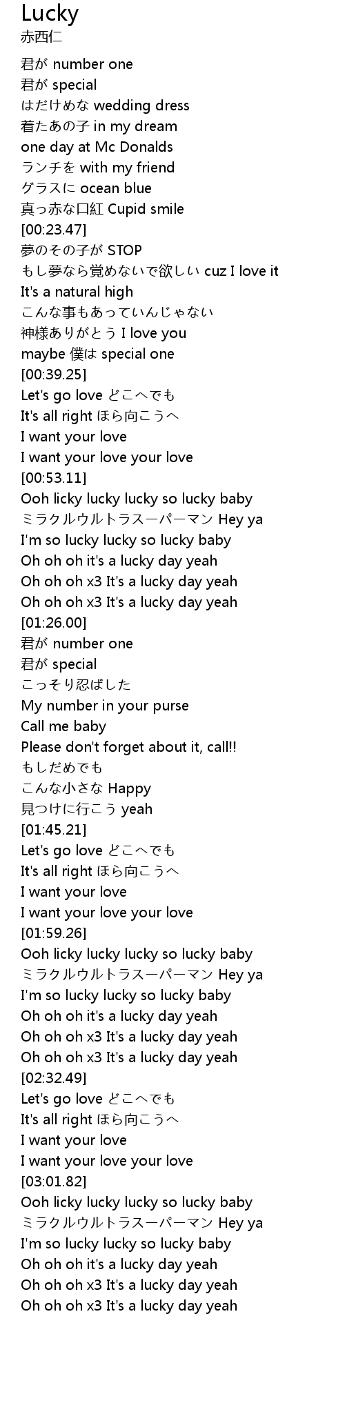 | [03:03.46] | Ooh licky lucky lucky so lucky baby |