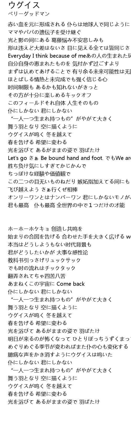 | 歌曲 | ウグイス |