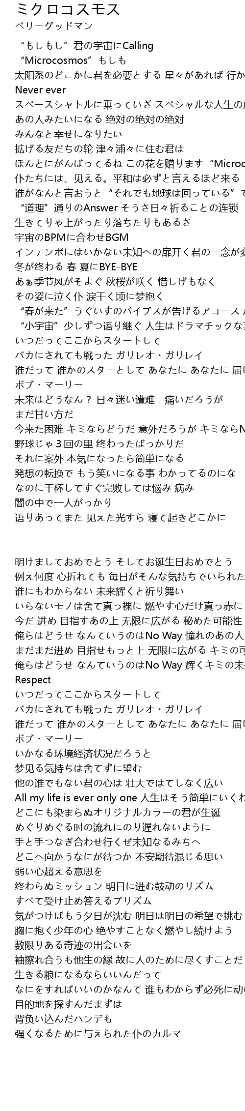 | 歌曲 | ミクロコスモス |