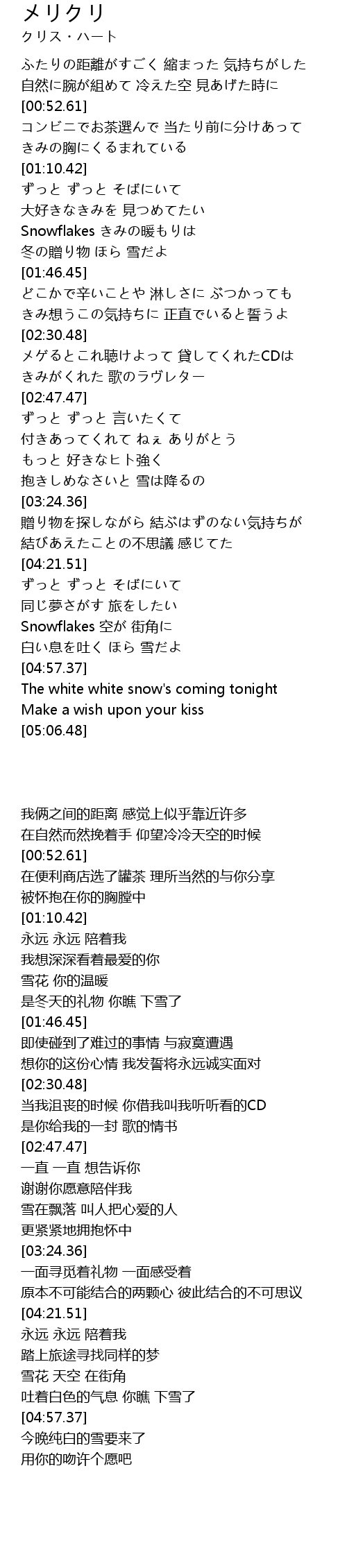 | [04:02.78] | 贈り物を探しながら 結ぶはずのない気持ちが |