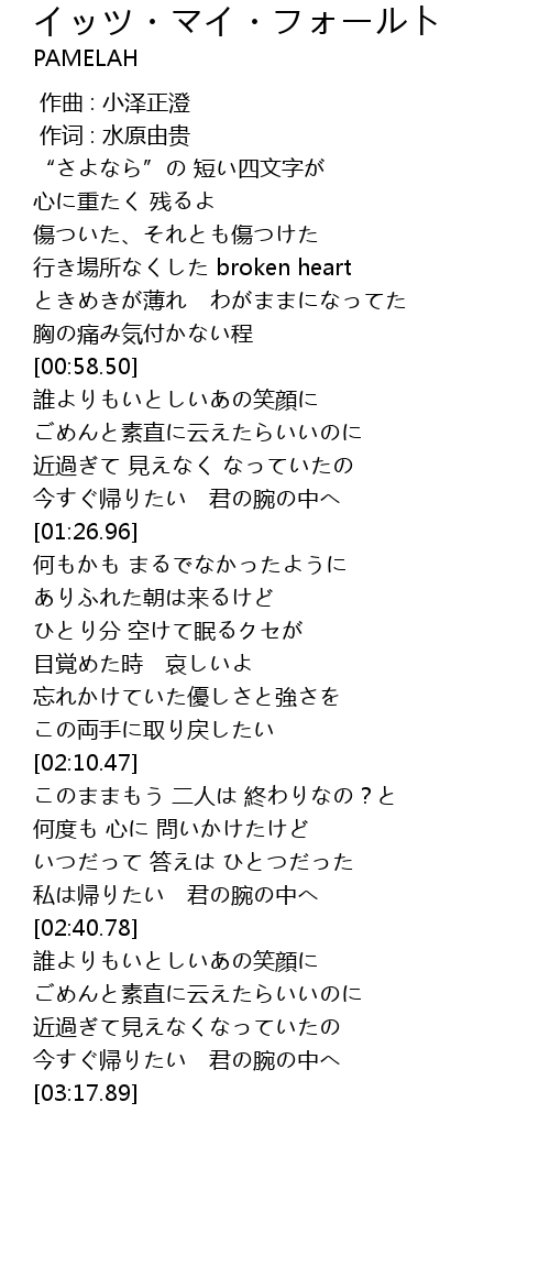 | [02:38.95] | 私は帰りたい 君の腕の中へ |