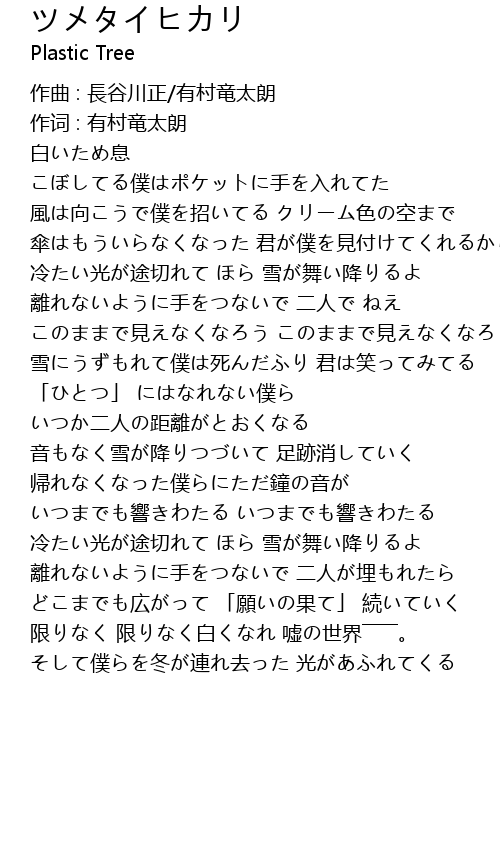 | 冷たい光が途切れて ほら 雪が舞い降りるよ | |