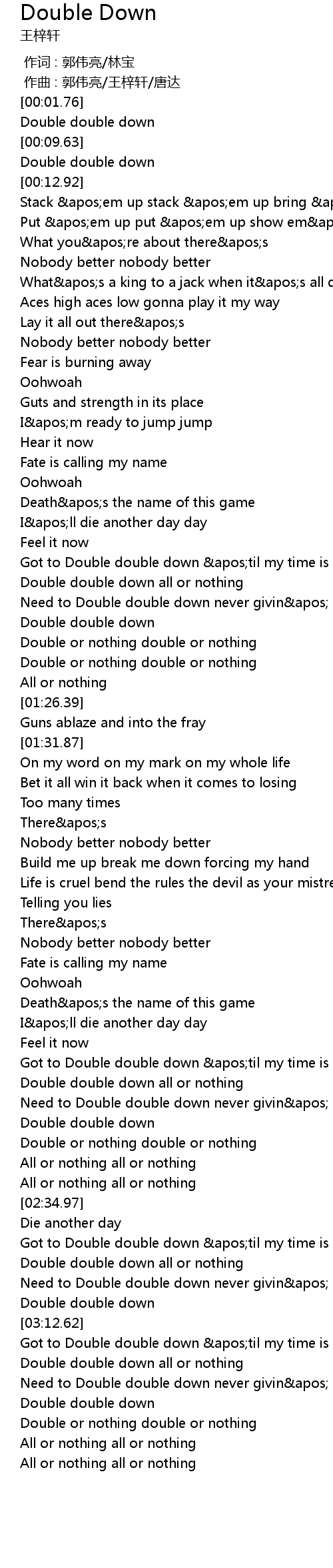 | [03:00.59] | Got to Double double down apos til my time is up |