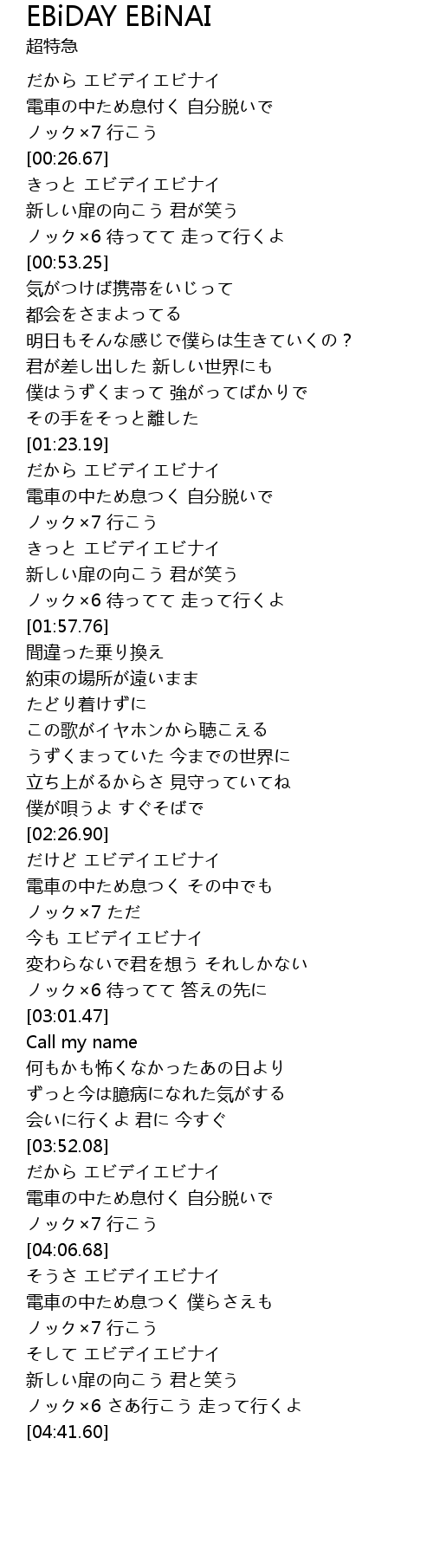 | [00:38.02] | ノック×6 待ってて 走って行くよ |