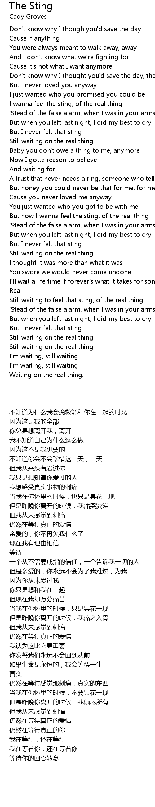 Still waiting to feel that sting, of the real thing |
