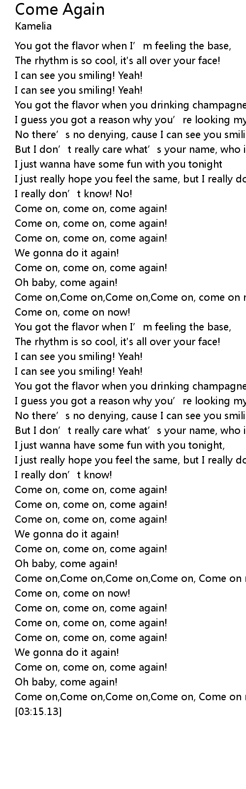 | [03:02.54] | Come on, Come on, Come on, Come on, Come on now! |