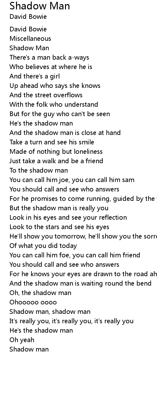 Shadow man, shadow man |