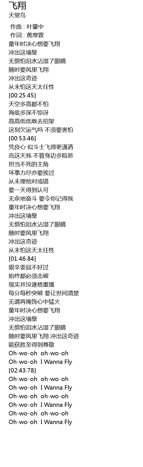| [03:02.29] | Oh-wo-oh I Wanna Fly |