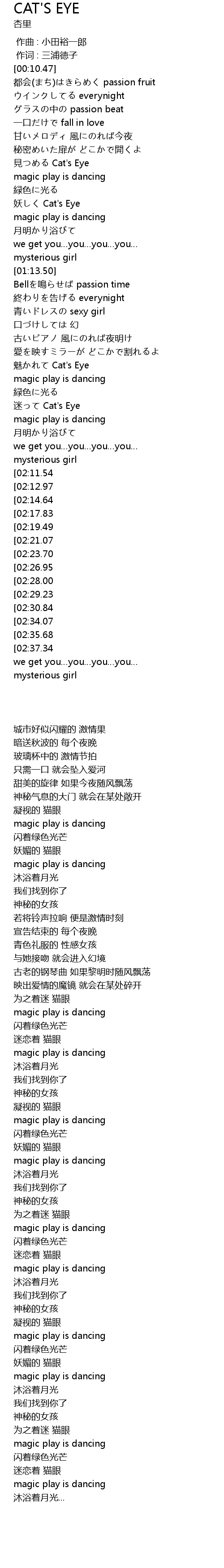 | [02:44.19][02:11.54] | jiàn Cat' s Eye |