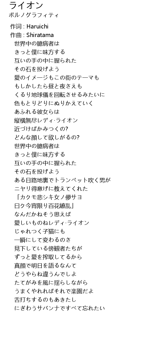 | [02:31.99] | 愛しいものねレディ·ライオン |