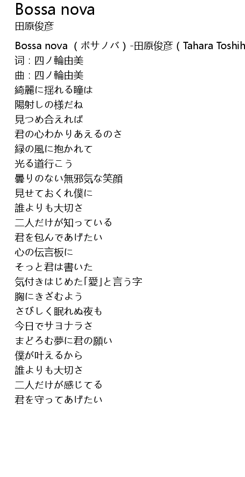 | [00:00.253] | Bossa nova (ボサノバ)-田原俊彦(Tahara Toshihiko) |
