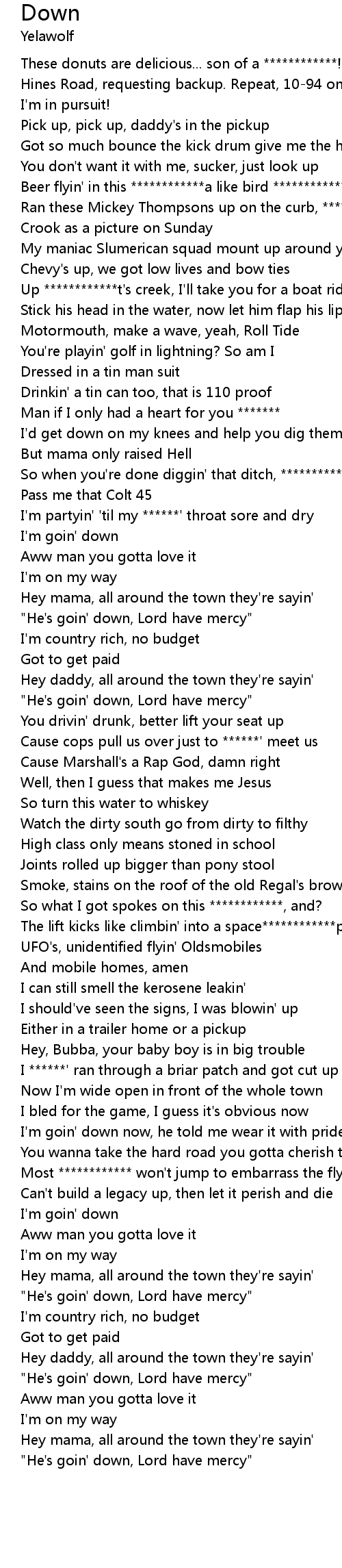 | [01:28.03] | "He's goin' down, Lord have mercy" |
