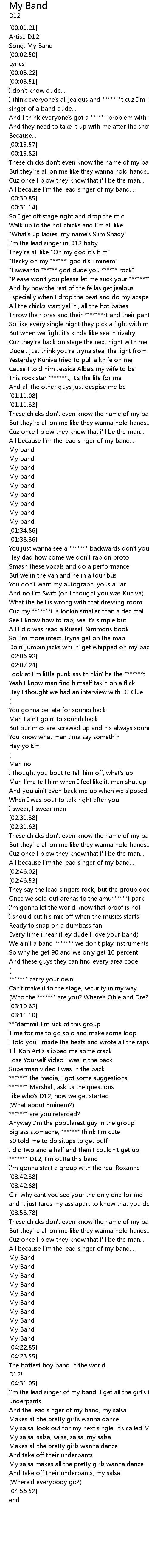 | [00:04.45] | I think everyone's all jealous and *******t cuz I'm like the lead singer of a band dude... |