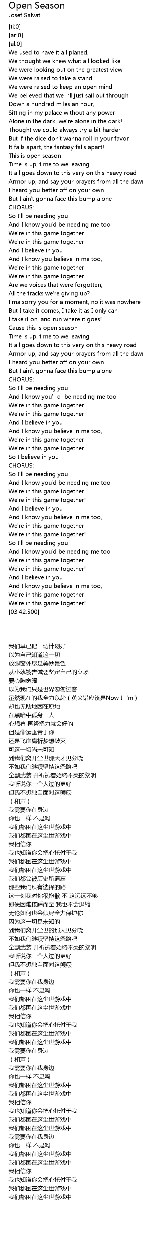 | 歌曲 | Open Season |