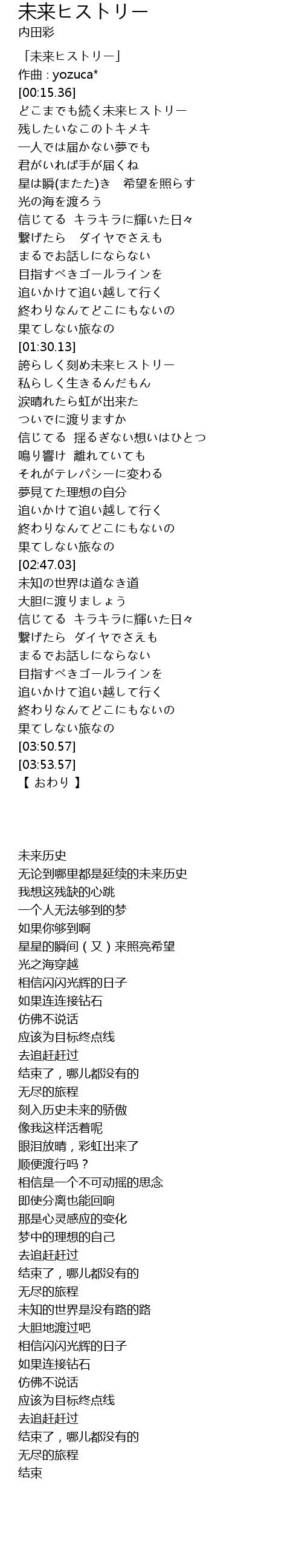 | [00:17.36] | どこまでも続く未来ヒストリー |