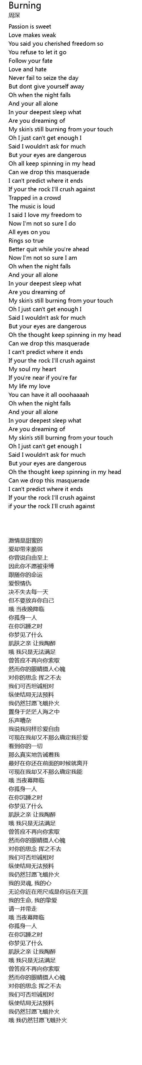 My skin's still burning from your touch |