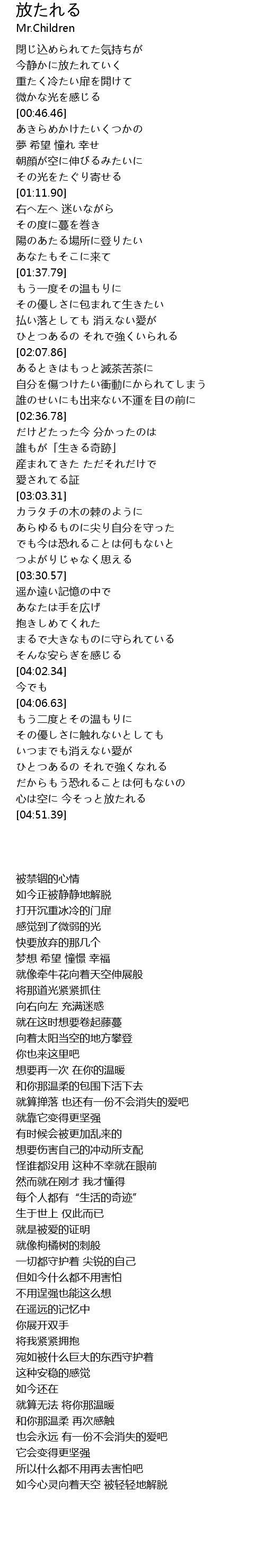 | [04:42.91] | 心は空に 今そっと放たれる |