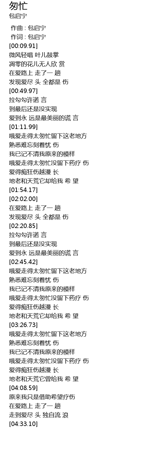 | [03:46.95] | ó ài zǒu dé tài cōng máng méi liú xià yào liáo shāng |