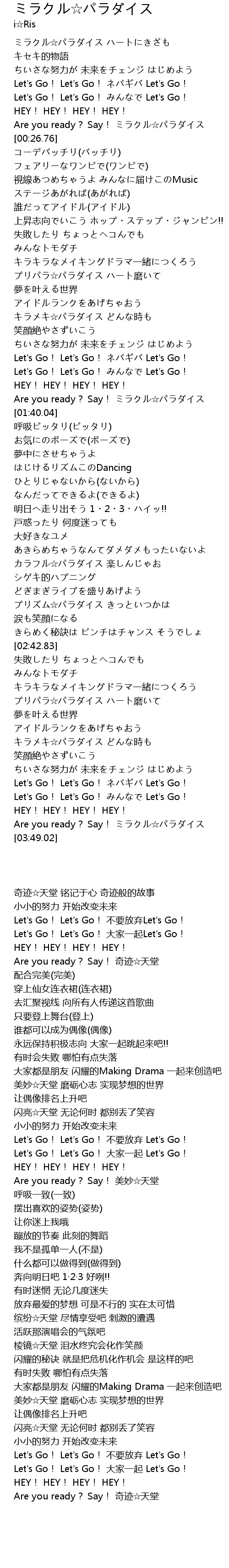 | [01:37.14] | Are you ready? Say! ミラクル☆パラダイス |
