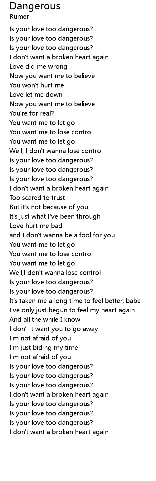 | [01:12.500] | Is your love too dangerous? |