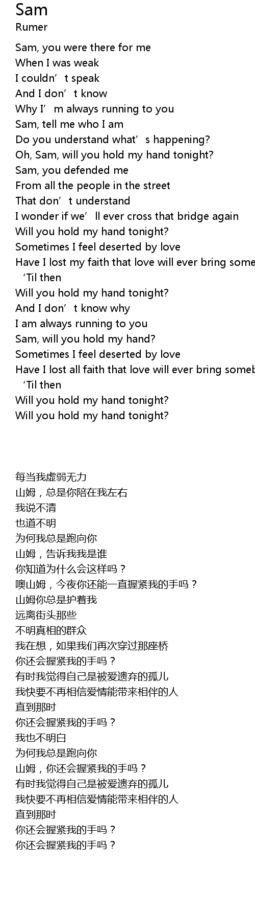 | [02:34.100] | 山姆,你还会握紧我的手吗? |