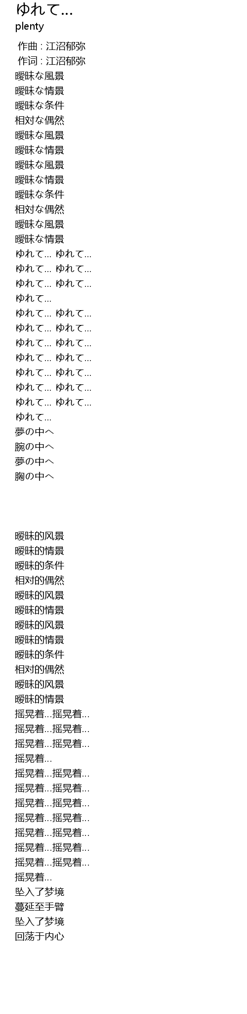 | [01:32.99] | ゆれて... ゆれて... |