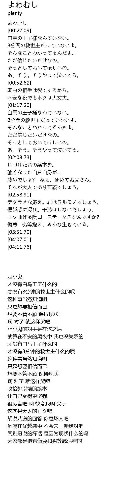 | [00:27.55] | 白馬の王子様なんていない。 |