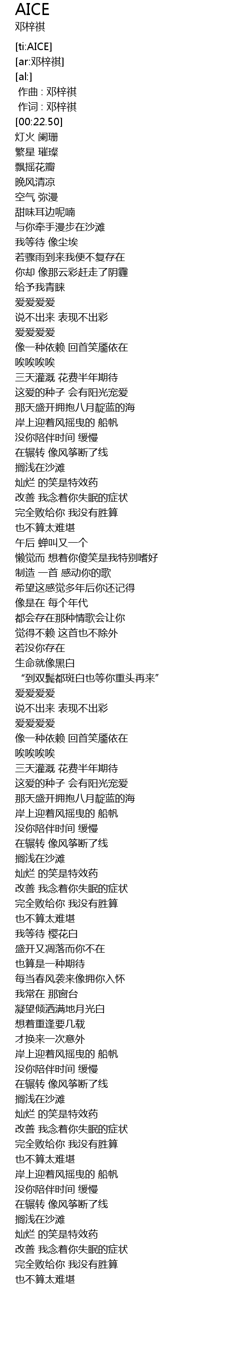 | [00:00.00] | 作曲 : 邓梓祺 |