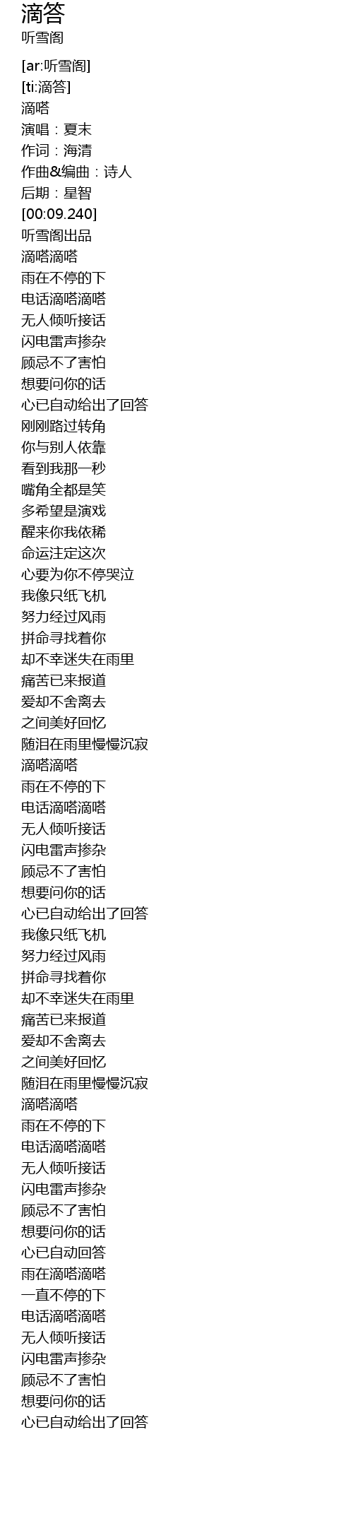 | [00:15.710] | 滴嗒滴嗒 |