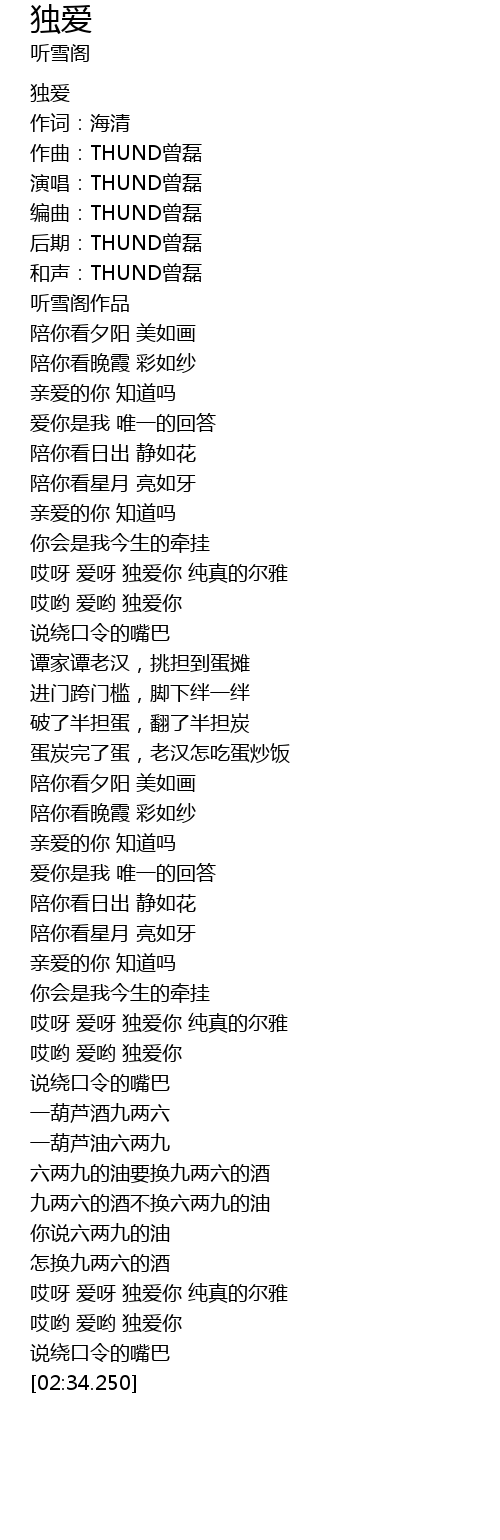 | [02:27.500] | 哎哟 爱哟 独爱你 |