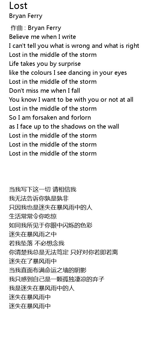 | [01:45.31] | 迷失在了暴风雨中 |