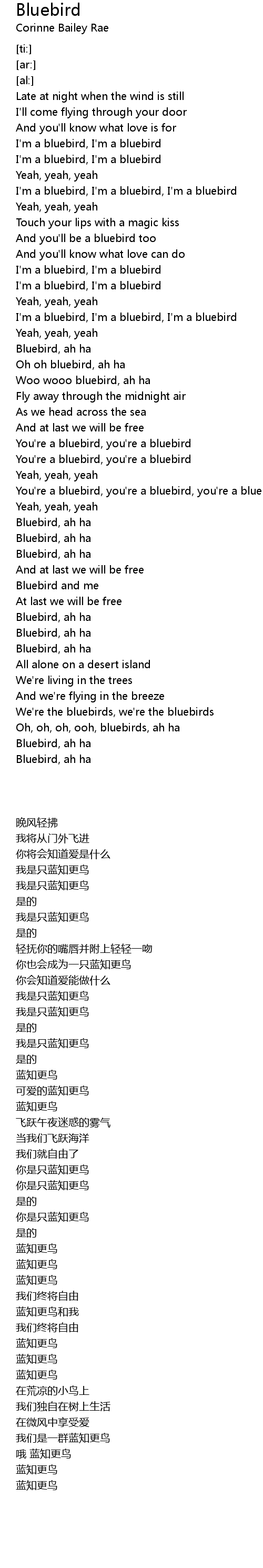 I'm a bluebird, I'm a bluebird, I'm a bluebird |