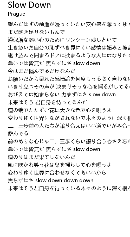 | 急いでは皆無だ 焦らずにさ slow down | |