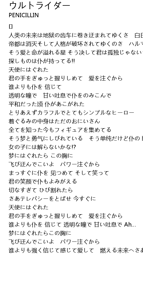 | 梦にはぐれたら この胸に 飞び迂んでこいよ パワー注ぐから | |