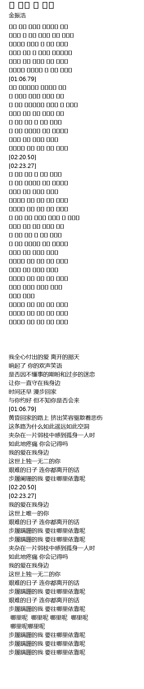 | [02:23.89] | 내 사랑 그대 내 곁에 있어줘 |