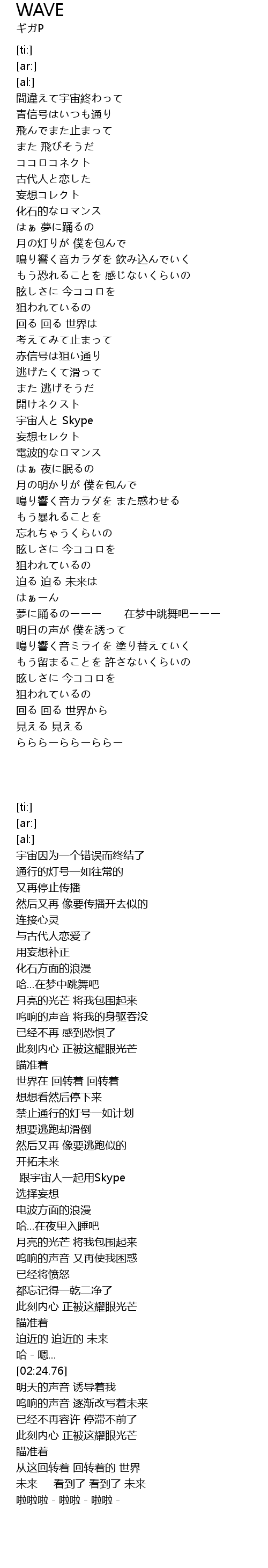 | [01:46.40] | 鳴り響く音カラダを また惑わせる |