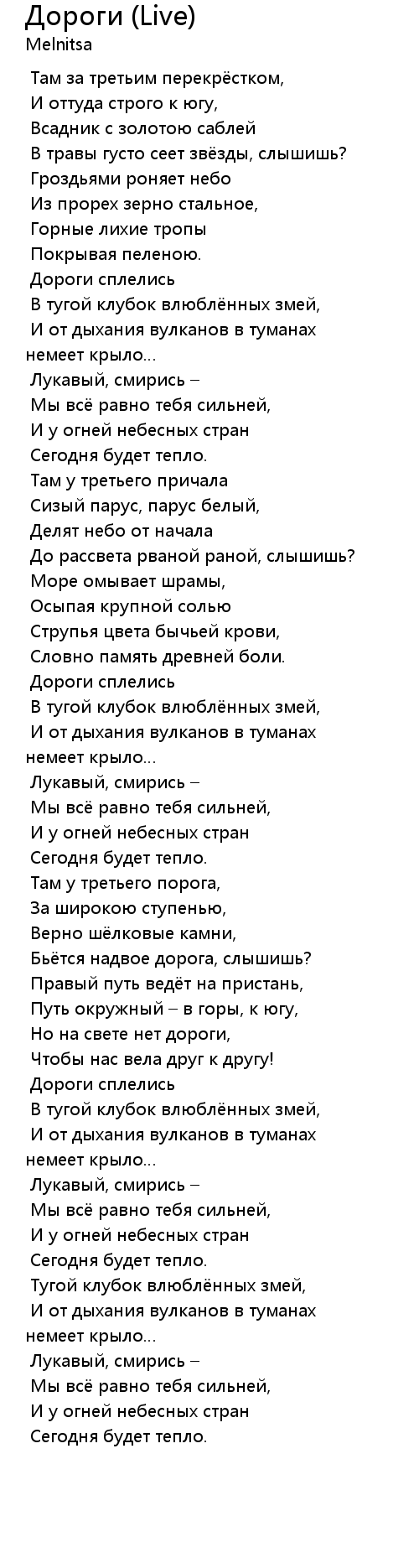 Бьётся надвое дорога, слышишь? |