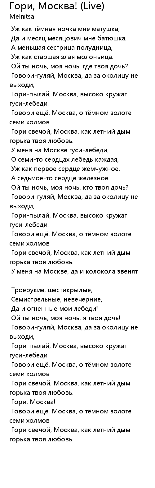 Гори свечой, Москва, как летний дым горька твоя любовь. |