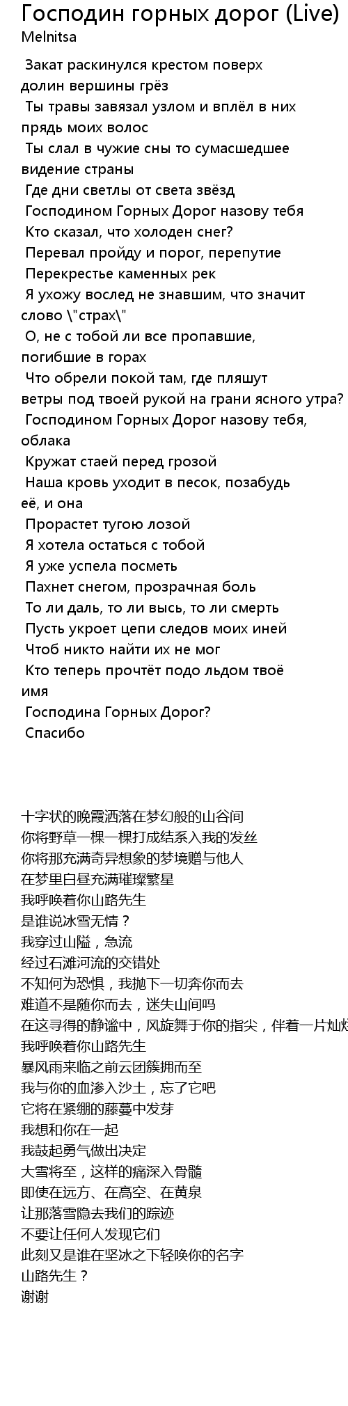 | 歌曲 | Господин горных дорог (Live) |