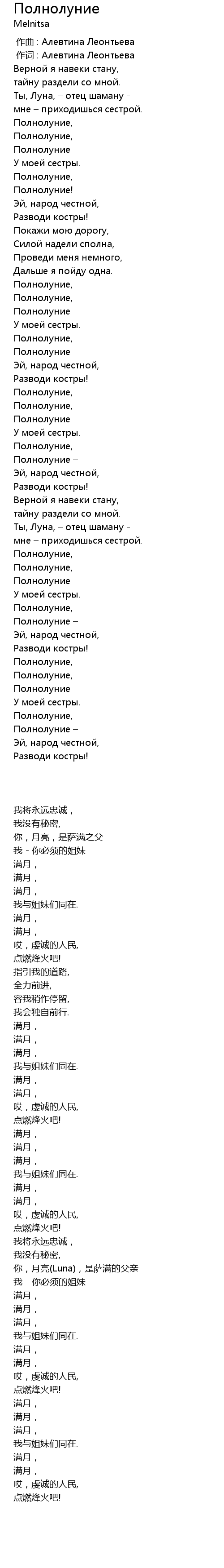 | [02:45.70] | 你,月亮(Luna),是萨满的父亲 |