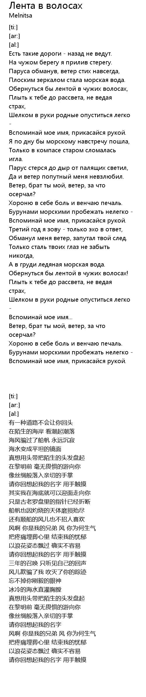 | [02:00.46] | Обернуться бы лентой в чужих волосах! |