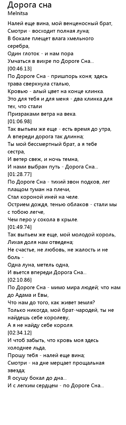 Дорога сна 歌词