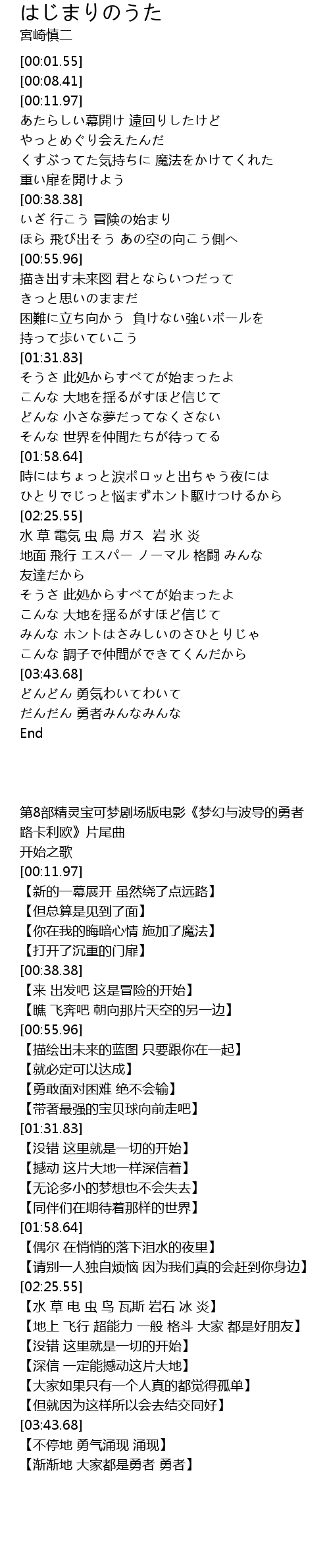 | [03:03.97] | 【地上 飞行 超能力 一般 格斗 大家 都是好朋友】 |