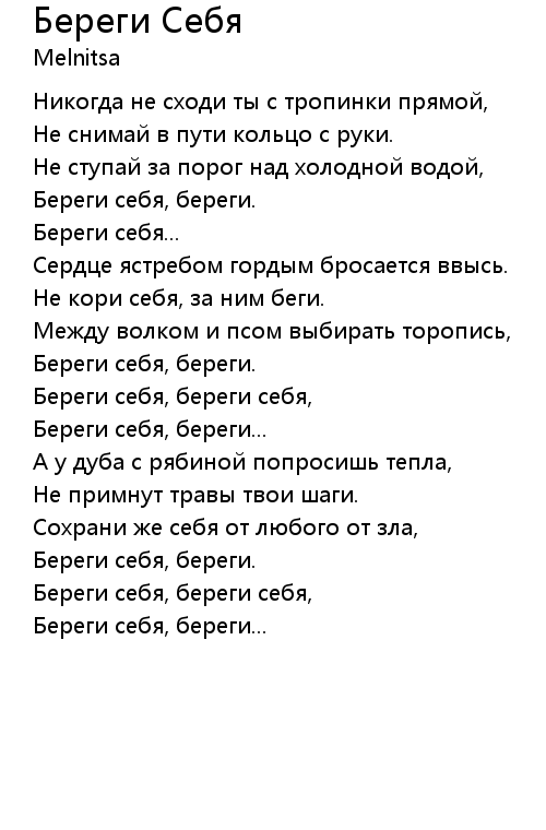 | Береги себя, береги себя, | |
