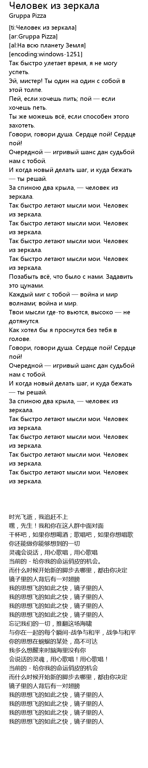 | [00:40.16] | Так быстро летают мысли мои. Человек из зеркала. |