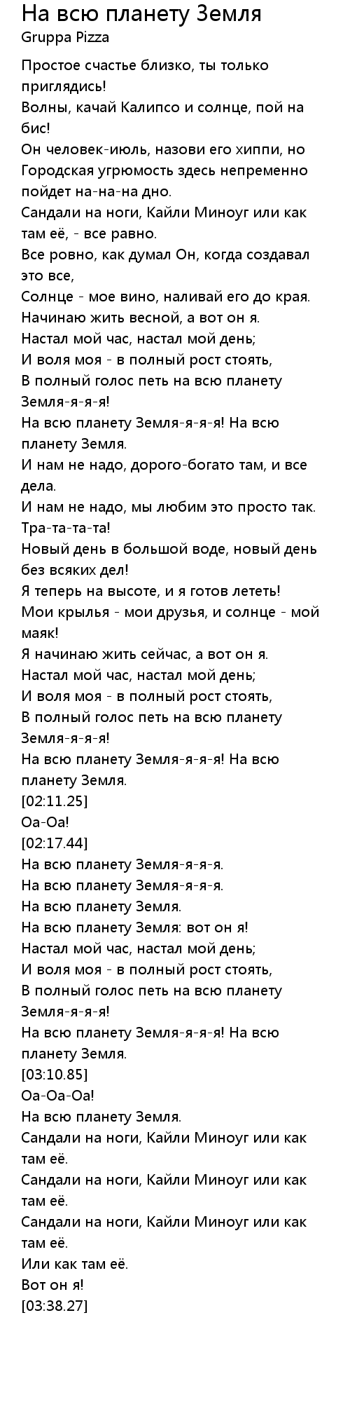 В полный голос петь на всю планету Земля-я-я-я! |